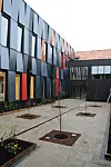 Det nye bygget har plasstøpt kjeller med betongelementer som etasjeskillere. Fasaden på bygget som vender ut mot Storgata har lys teglstein og skråtak med takstein av tegl. Den øvrige bygningskroppen har fasadeelementer.