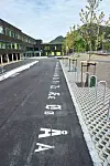 − Den store åpne atkomstplassen er den offisielle delen, mens elevsidene av bygget mot sørvest utgjør den mer privatiserte delen. Dette er en skole med store aldersforskjeller, og det var viktig å sonedele anlegget med alderstilpassede uteområder. Hente- og bringesituasjonen for foreldrene til de minste barna blir lettere ved at disse elevenes inngang er plassert nærmest atkomstplassen, forteller Andresen.