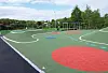 Det store, åpne utomhusområdet inneholder store lekeområder, med ballbaner med kunstgress, gummidekker, ballbinge og klatrestativer plassert på den sørvestre delen av den vel 24 mål store tomta. I terrengfallet fra øst er det også lagt et amfi ned mot skolens hovedinngang. Grøntdraget i yttergrensene av tomta er i stor grad beholdt, ved at Bærum kommune la sterke føringer på å bevare og skåne en del vegetasjon og de eksisterende trærne i byggeperioden. Her har både kommunens egne ressurser og arborister deltatt i trepleie og -vern.
