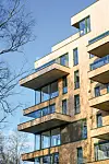 - I Urban Villas er byggeriet tradisjonelt med plasstøpt betong og stålsøyler som bæresystem. Byggene er fire og fem etasjer, med teglstein i fasaden. Mens tårnet er åtte etasjer, og har brannhemmende trekledning i fasaden, forklarer Jensen.