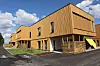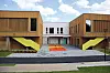 Bygget er tradisjonelt konstruert på betonggrunn med stålkonstruksjon og hulldekker. Fasadene har i hovedsak trekledning med spiler, med enkelte partier av gjennomfargede fibersement-plater. Det er også store innslag av glassarealer med vindusflater som gir mye dagslys.
