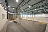 – Det er egentlig tre plan under ett tak, med en høydeforskjell på 4,5 meter fra øverste og til nederste nivå. Det ble foretatt en del masseforflytning fra øst til den vestre delen av tomta for å bygge opp dette nivået, forteller Consto Østs anleggsleder Jon Ole Bekkhus. – Det er støpt plate på mark, men med mange vinkler og doseringer i svingene mellom de forskjellige nivåene inne i hallen.