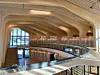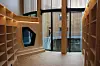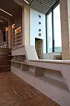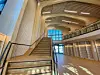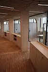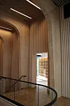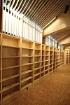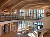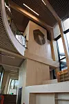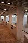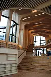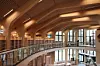 De besøkende møtes av et stort åpent rom hvor trekonstruksjonen med all tydelighet vises frem.