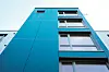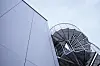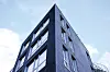 Fasaden utendørs er en kombinasjon av plater og brannimpregnert trekledning/lekter. Under platene ligger spesialisolasjonen Rockwool REDAir, som ikke trekker til seg vann og heller ikke er brennbar.