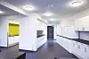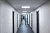 – Bygget er fullsprinklet, og eksponert massivtre er brannlakkert slik at det ikke brenner. Lydkrav er en større utfordring i bygg med så lette konstruksjoner. Alle massivtredekker må isoleres og påstøpes, samtidig som det gjøres tiltak i alle himlinger. I alle hybler og fellesareal må himling isoleres og gipses. Det er også påforing med gips på alle yttervegger der det er hybler og fellesareal for å redusere lydtransmisjon mellom etasjer. Men i store deler av bygget på innsiden er overflater i eksponert massivtre, forteller han.