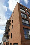 Det er en relativ høy materialkvalitet ved hovedsakelig bruk av tegl i fasadene, med noe innslag av metall og puss.