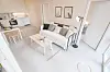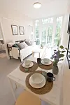 – Alle leilighetene er like. De er 50 kvadratmeter og inneholder stue med åpen kjøkkenløsning, to soverom, et bad og entre. Det er lyse boliger med store vindusflater og mye synlig massivtre. I tillegg har alle leilighetene enten fransk balkong eller platting, sier Bjerklund.