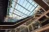 Nye fritthengende trapper er også bygget på kryss og tvers i det nye innglassede rommet i midten av bygget.