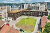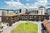 Over disse lokalene har AF etablert en åpen plass med flott utformede utearealer, samt flere etasjer med boliger.