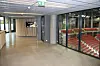 Tomtens utforming gjør at bygget er kompakt, og at hallrommet oppleves som intimt.