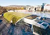 Det buede taket skal fungere som en overgang mellom to nivåer i landskapet. De buede stålkonstruksjonene i takkonstruksjonen, som Rambøll Norge har prosjektert, er fra arkitektens side ment å illudere eggen på Sonja Henies kunstløpskøyte snudd opp ned.