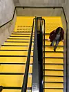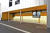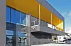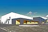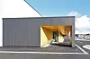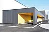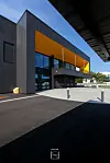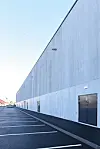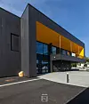 – Bygningen er plassert langs denne aksen, mellom regulert parkeringsanlegg på nordsiden, og fotballbanen mot sør. Inngangspartier, sykkelparkering og tribuneanlegg henvender seg ut mot idrettspark, mens hallene er plassert mot nord. Med hensyn til kort byggetid og stramt budsjett, er det tilstrebet en stram og effektiv planløsning og en enkel bygningskropp. Volumet som utgjør selve hallene er planlagt i isolerte elementer i betong i full høyde, hvor det legges inn en enkel matrise i elementenes øvre del. Mot sør understrekes overgangen til bygningens øvrige romprogram, i en sort boks som hviler mot betongvolumet. Inntrukne felter i fasade, for overbygget sykkelparkering og inngangsparti, er gitt en gyllen gulfarge som inviterer brukerne inn i bygget, sier Strønstad.