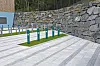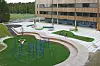 Uteområdet er godt tilrettelagt både for trivsel og bruk. Sykkelparkeringen og gangarealer har dekke av betongheller. Skråningen på fremsiden av bygget er vel utnyttet til et romslig og lunt amfi. Dette speiles i et nesten tilsvarende amfi i skolebygget. Selve bygningskroppen er i all hovedsak dekket av panel, og speiler skogen som ruver like ved.