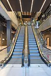 Inne i bygget er det fliser, tepper, parkett og heltre plank på gulvene. I kjøpesenterdelen er det åpne himlinger med lydabsorbenter. Kontorene har systemhimlinger med lyddemping.