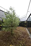 På taket ligger en offentlig tilgjengelig hage på to mål. Den inneholder benker, belysning, lekeapparater og dekker av granitt og sedum.