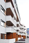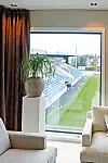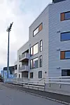Ved Haugesund Stadion har boligutvikleren A. Utvik ført opp en blokk med 40 leiligheter. De fleste beboerne kan her se fotballkamper fra stuer og terrasser.
