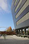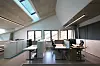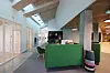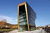 – Et av våre viktigste kriterier for bygget var å bruke materialer som er minst mulig energikrevende å produsere, og det andre er å bruke minst mulig materialer. Vi ville ikke legge på masse utenpå betong med sparkling og maling, og heller ikke bruke mye belegg. Men bruke rene materialer som de er, og det har vært et gjennomgående prinsipp. Vi har brukt mye betong. På overflatene er det brukt askfiner, og man har i tillegg bruk noen tradisjonelle løsninger som malte gipsplater. I himlingen har vi brukt treullsementplater. Det er treull blandet med sement som er støpt sammen. Det er et miljøvennlig produkt, som også har gode akustiske egenskaper. Teppeflisene er et produkt som er laget av resirkulerte fiskegarn. Utvendig har vi brukt tradisjonelle Steni-fasadeplater, og en spilefasade av termofuru, som er brannhemmende. I tillegg er en av fasadene og taket dekket av solceller, forklarer Larsen.