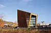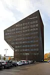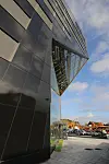I tillegg har inngangspartiet en glassfasade med et utheng på cirka 45 grader, og det er også spesielt.