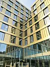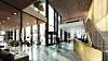 – Men det er vi som har stått for selve fasadeutformingen sammen med inngangsforholdene og logistikken rundt bygget. Det sentrale konseptet har vært å lage to ulike fasader; en stram, mørk fasade mot nord og vest og en vennlig gullfasade som vender mot syd og torget som skal komme der. Vi har også vært opptatt av å finne en gunstig plassering av inngangen, slik at den blir synlig og kan være med på å skape liv på gateplan. Inngangen er lagt i et hjørne, inn i et åpent område i to etasjer og med et raust uttrykk. Selv om det starter med en kantine i første etasje vil det også kunne fungere som et utadrettet serveringssted. Bruk av blant annet trepaneler på veggene er også med på å løfte standarden og gjøre det mer offentlig og tilgjengelig, sier han.