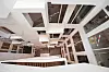 Fra første går det en bred amfitrapp opp til en møteromspool i 2. etasje, der det er møterom i varierende størrelser fra seks per-soner opp til cirka 80 personer. I denne etasjen er det også en privat leietaker, det samme er det også i 6. og 7. etasje. Sammen med et kontorhotell har Bjarøy Eiendom selv arealer i 8. etasje, der de disponerer en egen takterrasse.
