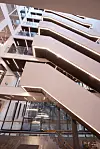 – En del av uttrykket er at disse stålfagverkene som går vertikalt, de er blottlagt enkelte steder og bygget inn andre steder. Det kommer veldig klart frem i fasaden, og det var viktig at de ikke virket forstyrrende. Å finne overgangen mellom de forskjellige rytmene i fasaden er veldig knyttet til dette konstruksjonssystemet, forklarer Bernhardt.