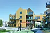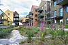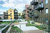 – Taknedløpene fører vannet ned i renner og slippes ut i plantefeltene. En kombinasjon av støpt betong, tredekker og gummidekker danner en fleksibel struktur av gangsoner, oppholdssoner og lekearealer. Tredekkene fungerer som bruer som lar regnvann passere under. Busker, stauder og prydgress gir en frodig kontrast til dekkene. Uterommet rammes inn av bygget som fungerer som en skjerm mot støy og vind, og har en åpenhet mot vest med gode solforhold, forteller Wike.