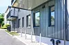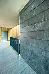 Selv om det altså er stor variasjon i fasadeutformingen, var det et viktig poeng for arkitektene at det samme materialvalget på takflatene også skulle benyttes i fasadene.
