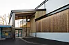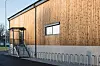 Det var heller ikke planlagt fasader av tre. Men som et miljøtiltak med holdbare og vedlikeholdsfrie fasader, og for å få frem et uttrykk opp mot den nye videregående skolen et steinkast unna, ble det en etterbestilling på trekledning i malmfuru.