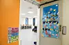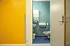 Alle gulver har linoleum på overflater. Alle synlige veggoverflater er malt robust gips. Taket er systemhimling.