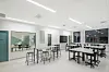 I tillegg til skolefunksjoner rommer bygget svømmebasseng med 25 meters treningsbasseng, en kultursal med plass til 250 tilskuere og folkebibliotek.