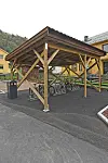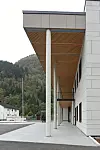 Bygget har et stort inngangsparti i midten mellom fløyene, dette er inngangen til kultursalen og de store arrangementene. Inngangspartiet er en monumental ramme for festplassen ute.