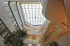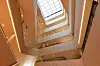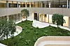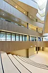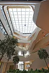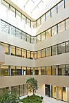 Alle rom får gode dagslysforhold og vender mot et attraktivt indre klimatisert rom med et stort overlys i glass. Organiseringen rundt det samlende atriet gir en svært god orientering og oversiktlighet. Den diagonale bevegelsen inne i bygget styrkes ved at bruer med trapper ligger i denne diagonalen. Slik blir diagonalen ikke bare et funksjonelt bindeledd, men også et viktig møtested for studenter og lærere. Atriet omkranses av gallerier, som også blir møteplasser og leseplasser. Atriet blir torget i byen, et sted for å se og bli sett.