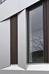 – Fasader har rammer rundt glassfelt av lys naturaluminium. Glassfelt er inndelt med rammer i mørkere eloksert aluminium. Ved hovedinngang er glassfasaden hevet i to etasjes høyder. Høye glassfelt og vinduer med lav brystning gir slektskap til de gamle verkstedhaller og fasader for første byggetrinn på Kronstad, sier Lunde.