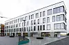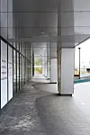 Hovedinngangen ligger sentralt plassert under arkaden, og herfra blir man ledet inn i en felles lobby og videre inn i kjernen med hovedatkomst og fellesfunksjoner.