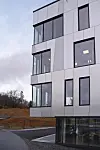 – I interiøret er det i inngangsparti og fellesarealer lagt vekt på gode og robuste materialer, med innslag av treverk og nøytrale farger som harmonerer med fasadens kjølige uttrykk. Garderober og toaletter har fått en tydeligere fargeprofil, som kontrast til det nøytrale fargevalget i øvrige deler av bygget, sier Dalseg.