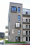 Prosjektet er gitt et urbant preg med Townhouse struktur. Fasadene er utført med variasjon mellom teglforblending, lys platekledning og kledning i tre.