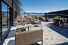 Fra hotellet og hotellets uteområder er det utsikt mot Hardangerfjorden, snøkledde fjell og isbreen Folgefonna.