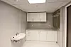 – Vi måtte lage en ti meter høy fjellskjæring kun 40 centimeter fra en eksisterende teglsteinsmur, gjennomført med sømboring, og vi måtte ta ut fjellmasser slik at det eksisterende bygget fikk full kjeller. Lave etasjehøyder ga utfordringer for føringer for teknisk fag. Dette ble løst ved bruk av loddrette sjakter, sier Mjelstad.