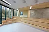 Mange innvendige vegger har gips kledd med kryssfiner, noe som er robust og stilfullt. Noen vegger har spilekledning med lydabsorberende materiale bakom. De fleste rom har systemhimling, noen har spilehimling med lyddemping.