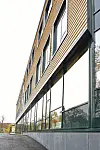 Den nye delen har trekantet form, fire etasjer og ligger på nordsiden av det gamle hovedbygget og binder sammen hovedbygget og det andre gamle bygget. Nybygget har bærekonstruksjon av plasstøpt lavkarbonbetong, membrantekking på tak og glass på taket (over atrium) og glassfasader og luftet flis av tegl på ytterveggene.
