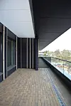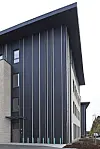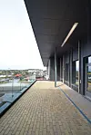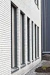 Innvendige og utvendige materialer er av høy kvalitet, med blant annet båndtekking på tak og platekledning i kombinasjon med lys tegl i fasadene.