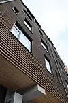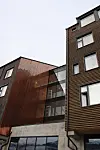 Bygget er delt opp ulike deler med variasjon i fasaden for å ligne på flere «hus».