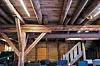 Taket er en trekonstruksjon med limtre og åser mellom limtrebuene, og med betongtakstein på toppen.