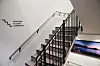 – Vi gjennomførte grunnundersøkelser som kartla behov for å stabilisere tomten. Det viste seg at det er 17 meter ned til fast fjell. Løsningen ble å kjøre rundt 50 stålpeler gjennom den planerte fyllingen og ned til fast fjell, med skråpeling. Gulvet i første etasje er armert som et dekke for å hindre sprekkdannelser om det oppstår setninger. Det vil si på samme måte som etasjeskille. Når bygget nå i prinsippet står på fjell, står det godt. Fundamentering AS har gjort den omfattende jobben med peling.