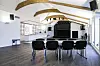 I den store konferansesalen på toppen måtte entreprenøren være kreativ siden taket over det store arealet ville være vanskelig å bære uten søyler.