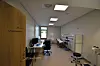 • 1. etasje: Vente- og mottaks- område, poliklinikk med sju undersøkelsesrom for pasienter som skal opereres, samt kontorer