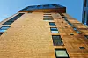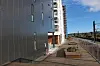 – I fasadene er det en kombinasjon av komposittplater med ulikt utrykk som Alunor. Det er også brukt en del brannpanel fra Woodify, i tillegg til mye glass. Det har vært ganske krevende fasader å bygge, men det er stilig og det har blitt veldig bra, tilføyer prosjektlederen.