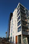 – Tre av byggene har stålbæring og plattendekker, mens de to høyeste har plasstøpte dekker og stålbæring. Alle heissjakter er plasstøpt, og trapper og balkonger er prefab. Valget av plasstøpte løsninger handlet både om byggetid, logistikk, geometri og optimalisering av etasjehøyder, forteller Grøndahl.
