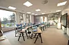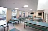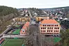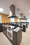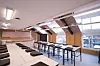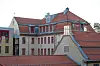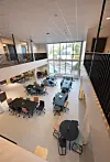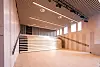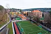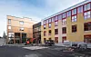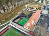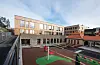 Nybygget i nordvest ligger på en tidligere fotballbane, her man måtte sprenge seg om lag 10 meter ned for å få plass den nye flerbrukshallen. Mellom dette og nabobygget i øst, som blant annet inneholder resepsjon, administrasjon, bibliotek og en aula, er det en forbindelse i kjeller og i første etasje. Bortsett fra den frittliggende sidebygningen, har alle byggene gjennomgang seg imellom.