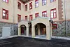 Både hovedbygningen og sidebygningen hadde en tak over tak-løsning mens arbeidene pågikk. I sidebygningen ble den gamle buede portalutformingen reetablert, og gymsalen gjort om til arealer for kunst og håndverk.